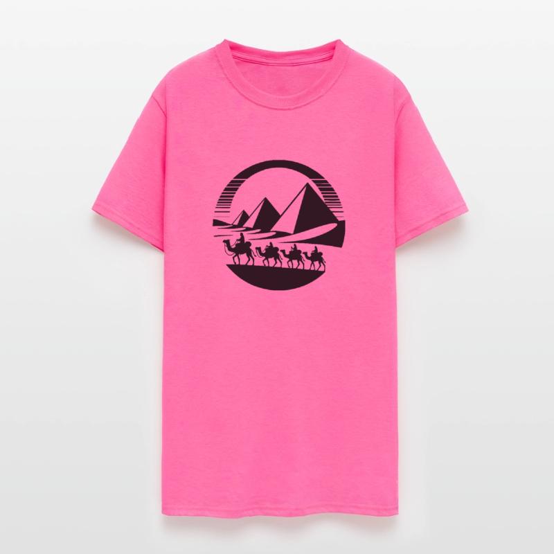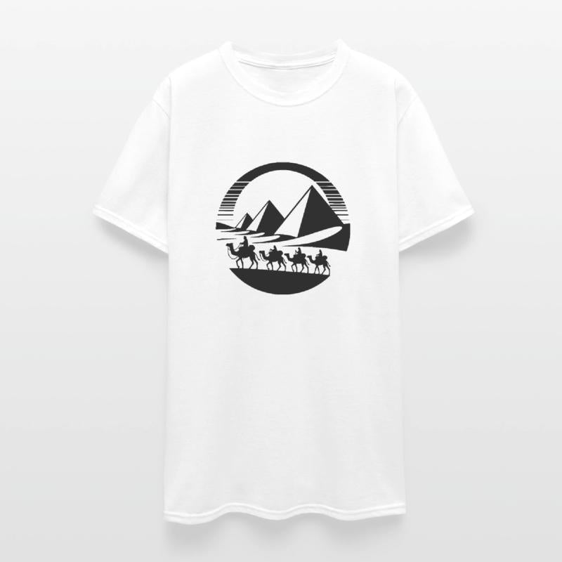 Desert Caravan With Pyramids In The Background
